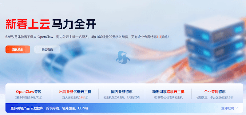 如果我们有需要云服务器、出海服务器,以及部署小龙虾的,可以看看他们的活动。