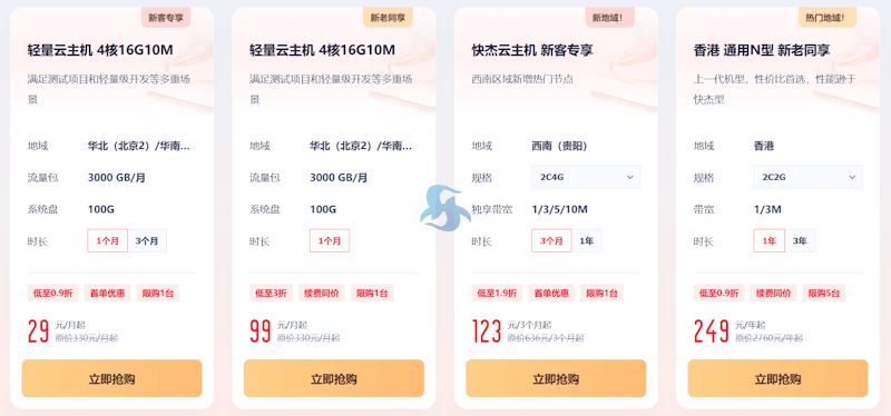 同时对于高配云服务器也有一定的折扣活动,满足高配置业务需要。