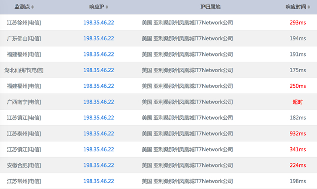 洛杉矶和凤凰城Ping速度对比